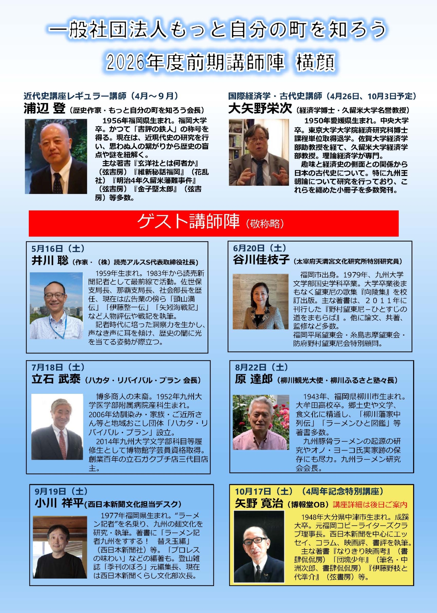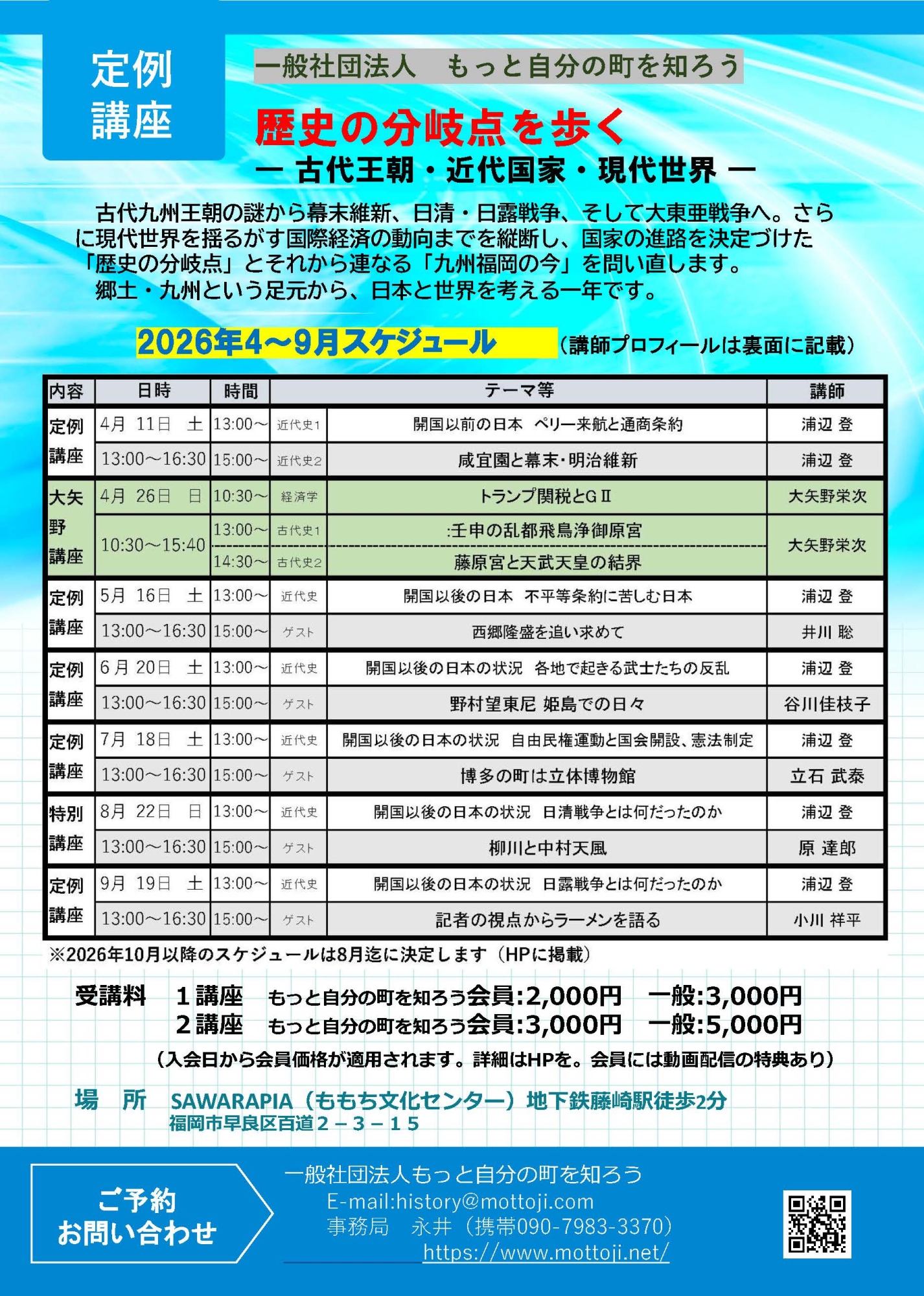 2026年度上期定例講座スケジュール(4月~9月迄)